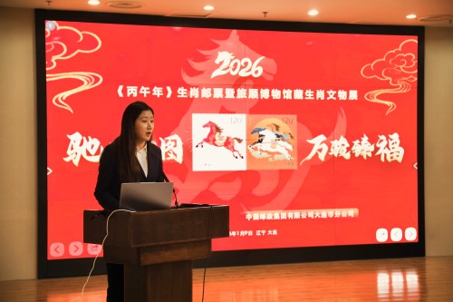 随后播放的《丙午年》生肖邮票宣传片,生动展现了邮票的设计理念与艺术特色。中国邮政集团有限公司大连市分公司副经理赵洋进一步阐述了生肖邮票发行与博物馆文化传播之间的深层联结。