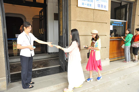 每年七·一这天都会有大批共产党员来博物馆参观,今年也不例外。为保证党员观众顺利参观旅顺博物馆,馆领导班子经研究决定,七·一这天正常开馆,由共产党员承担展室开放任务。早8点50分,全体共产党员身着馆服,佩戴党员标志牌,来到展室。他们以全心全意为人民服务为宗旨,充分发挥爱岗敬业精神,为观众服好务。到闭馆时全天接待观众1000余人,其中党员活动团体10余个。党员热情周到的服务得到了观众的一致好评。