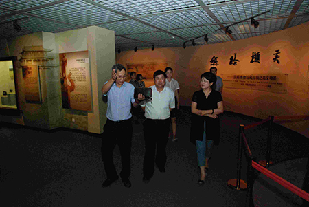 7月30日,市文广局李爱民副巡视员与文物处刘永森处长、孙传增副处长一行到旅顺博物馆调研指导。王振芬馆长与馆领导班子成员接待了李爱民副巡视员一行。李爱民副巡视员一行首先对陈列展厅、文物库房、文物修复工作室、文物信息中心、保卫科监控室等部位进行全面的实地调研,并现场提出指导意见。
