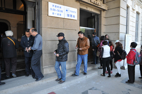 早晨8点30分,旅顺博物馆全体员工来到展室,做好迎接观众的准备;8点50分,博物馆大门准时打开;8点55分,主馆领票处门前排起了长队,许多来自大连本地及外地的观众昨天知道了博物馆免费的消息,今天一大早就赶来排队,成为旅顺博物馆全面免费开放后第一批免费参观的观众,讲解员为他们做了认真、详细的讲解工作。至下午15点30分,到旅顺博物馆参观的观众络绎不绝,全天共接待观众1671人次。