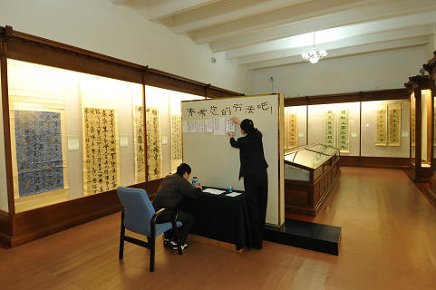 金秋十月,百谷飘香。为沉淀历史、喜迎收获,由旅顺博物馆自主举办的《书体的演变――旅顺博物馆藏历代书迹展》与观众见面。此次展览是旅顺博物馆业务人员充分利用馆藏优势,打破文物界限,组织与梳理馆藏甲骨文、青铜器、碑文拓片、金属器、石刻、宋、元、明、清以及近代书法作品等文物,打造的一个以“书体的演变”为主题的陈列,展览以中国历史发展为顺序,分为先秦书法、秦汉书法、魏晋南北朝书法、隋唐五代书法、宋元书法、明清书法六个单元,向观众娓娓道来中国书法从产生到发展的演变过程,展示了不同历史时期书体的形态,对于观众了解中国书法,了解中国传统文化具有深刻意义。配合展览还举办了观众互动项目——“秀书法”,让对书法感兴趣的观众秀出自己的书法,展示在博物馆准备的书法墙上。